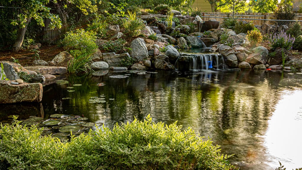 Standley Lake Project Patio, Fireplace and Koi Pond Fall nights require and outdoor fireplace. We designed and installed landscaping, a large fireplace, paver patio and custom pond for this Standley lake customer. Fire and water come together to make this a unique outdoor living area.